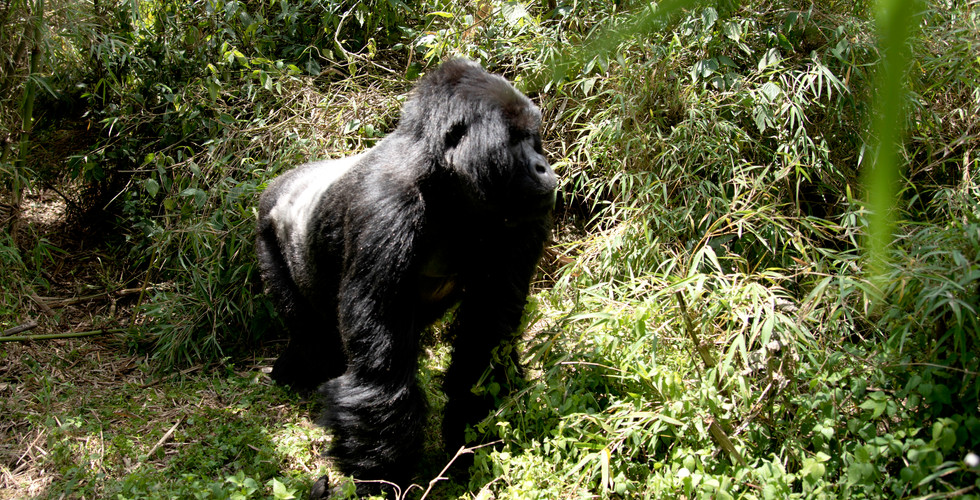 In Rwanda New Year's Eve is not the celebration rather it is New Year's Day that is important. We went on our 2nd gorilla trek for New Year's Day. We saw the Sabyinyo Group this time. That group had the oldest silverback who conveniently is also 49. His son is also a silverback. There is also an adult male that is almost a silverback, but he is considered a blackback, because his back has not yet silvered. This trek was much less challenging than the day before. We only went about 3 miles out and back. It was less muddy and on a scale of 1-10 it was about a 3. The day before it was a grueling trek in narrow, steep, muddy paths that was 9 or a 10 on the difficulty scale that was about 6.5 miles and 2 1/2 hours to find them. The guides the second day were amazing, Augustin and Placid, were informative and helpful. They were patient with other members of our group. The gorillas were in the bramble this time which were very tight quarters and they were in smaller groups so were constantly moving with them. The senior silverback brushed past us.